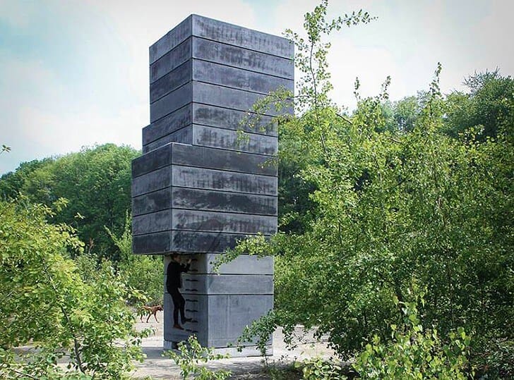 A three-level tower sauna, built in a location of an abandoned factory. A pool plunge in the bottom, a sauna in the 2nd floor and a resting room on the top where you can open the roof and lie in bed while looking at the sky. An interesting and poetic take on relaxation and recovery in solitude.